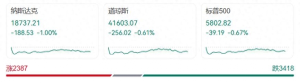 道琼斯工业平均指数收盘下跌256。02点,跌幅0。61%;尺度普尔500指数收跌0。67%;纳斯达克分析指数收跌1%。